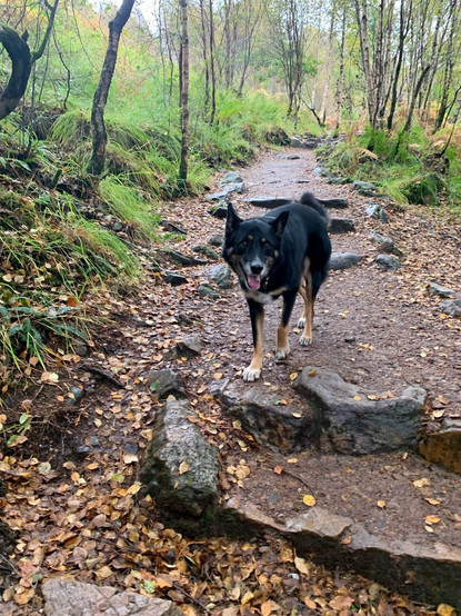 Luna is hurt! Girlfriend started favoring one of her legs a few weeks back, and we found out that she has a damaged ligament in one of her hind legs. To avoid surgery she has to stick to short 15 minute walks, no running, and never being off her leash. Needless to say, she is pissed. The vet suggested mental stimulation games to keep her mind occupied but this bitch wants to ruuuuun. She's been loving Scotland so far as there is a ton of green space, and the parks are all okay with offleash dogs as long as they come back when they're called. Just take a look at her dominating this countryside.
